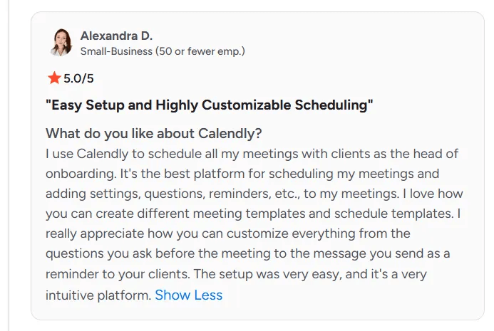 Calendly is widely known as the go-to tool for simple, fast appointment scheduling. After setting it up, what stood out immediately was how quickly a clean booking link could replace long email threads. Compared to traditional back-and-forth scheduling or heavier tools, it feels lightweight and efficient. It works best when the goal is to eliminate friction rather than build complex workflows.